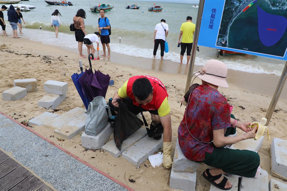 看,烟雨弥漫中,一条红龙正在海岸线延伸开来,那是我们bsports必一的义工们穿上火红的义工服正在海岸和沙滩上清捡游客留下的垃圾,bsports必一党员和义工们发扬不怕苦不怕脏不怕累的精神,正在一个一个清捡它们呢,随着这些垃圾被清理,此片海岸线又保持了她特有的魅力!